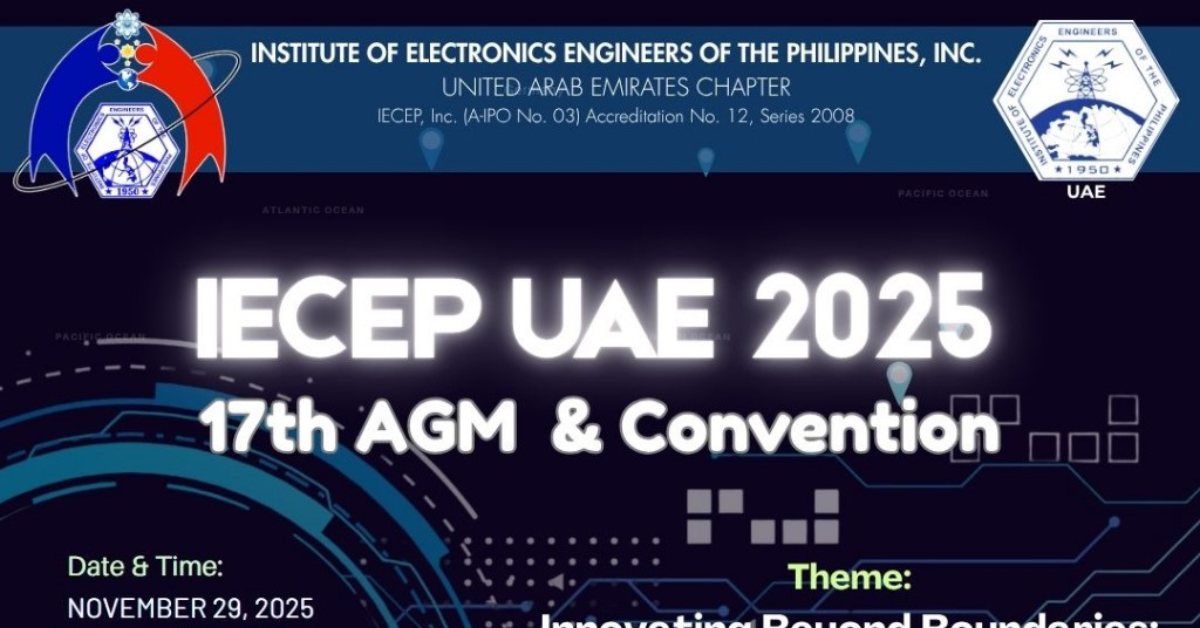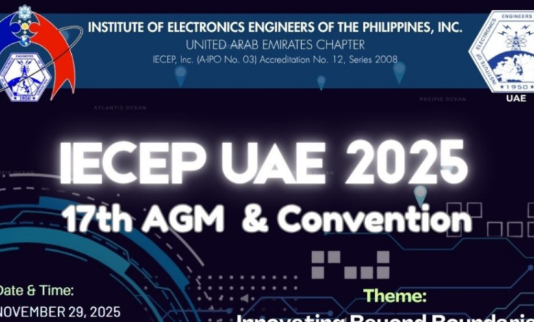 The Institute of Electronics Engineers of the Philippines – UAE Chapter (IECEP UAE) is set to hold its 17th Annual General Membership Meeting and Convention (AGM & Convention), bringing together Filipino electronics engineering professionals.