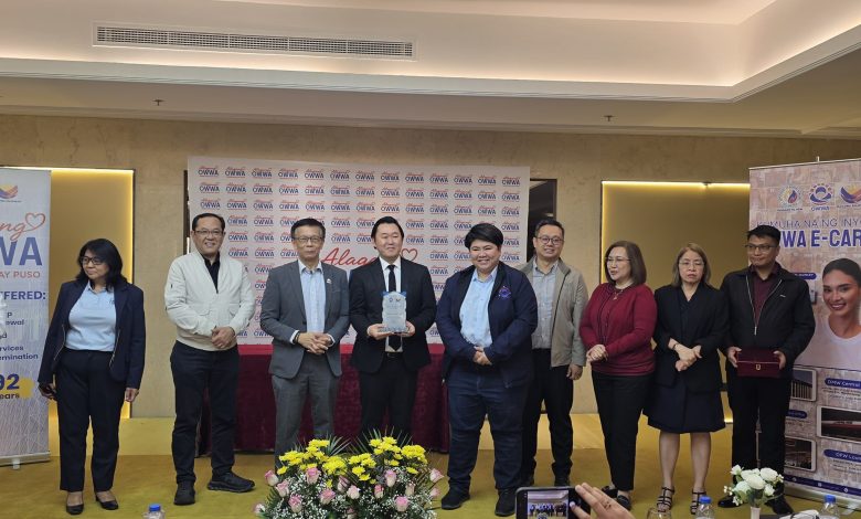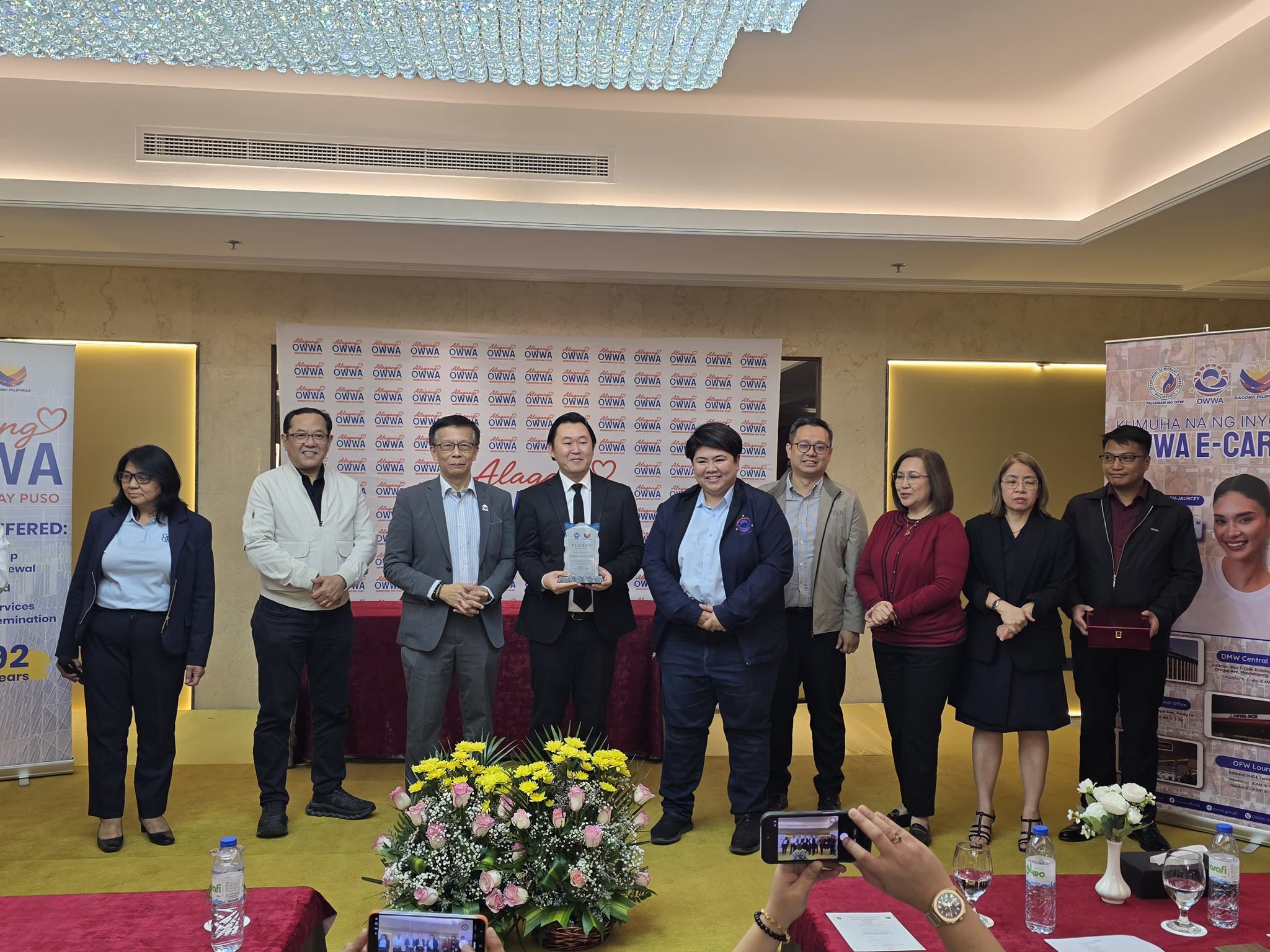 The recognition was marked by the presentation of a plaque of appreciation, which was received by FILSOC President Ericson Reyes, during a ceremonial signing of OWWA e-card partnerships with the Filipino community in Deira on Feb. 2.