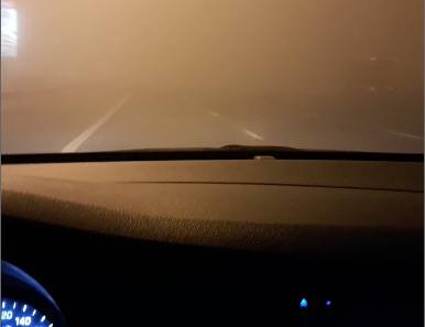 Adel sends this pic of this morning’s dangerous drive to work as thick fog reduced visibility.