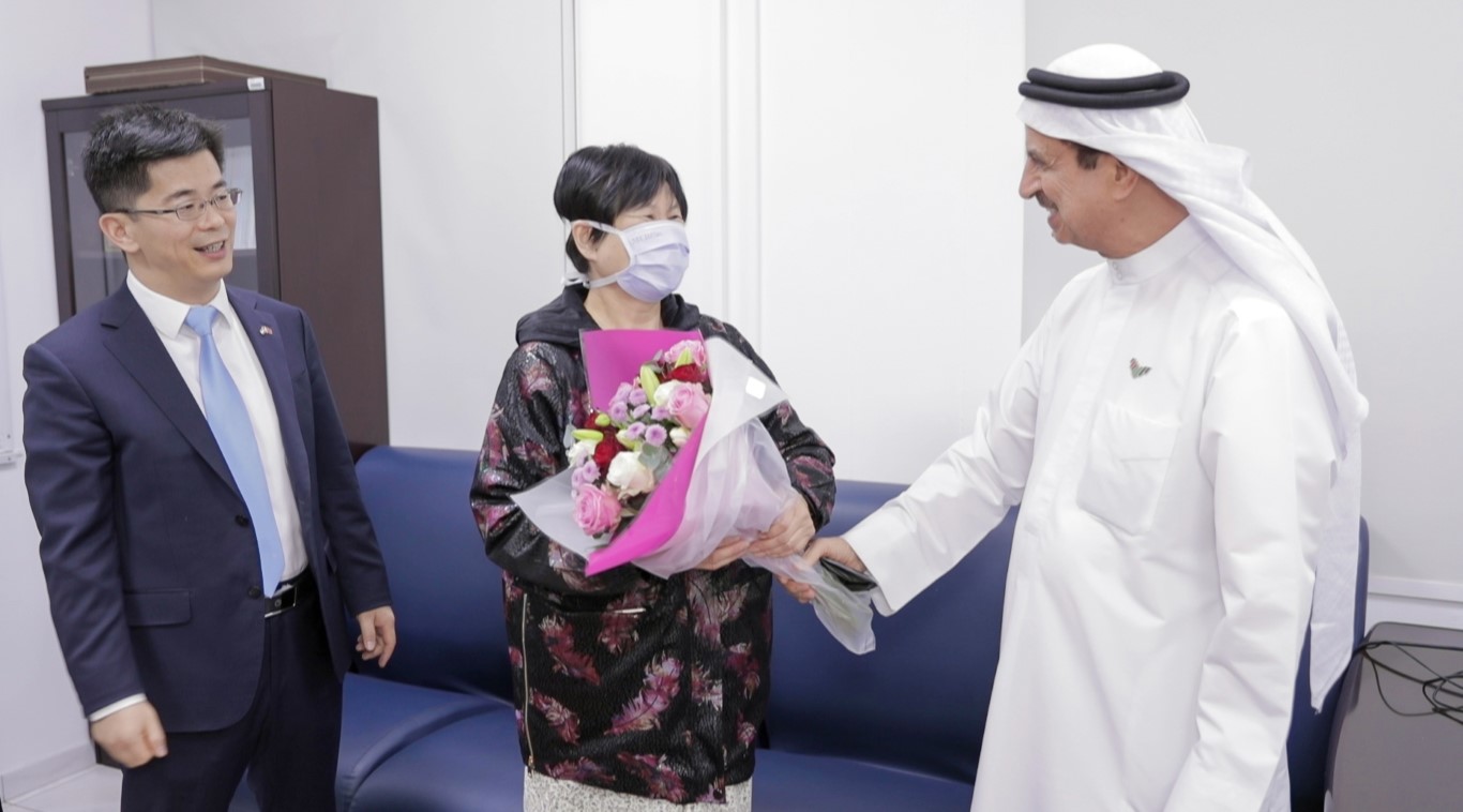 The Emirates News Agency, WAM, accompanied Consul General Li Xuhang of China and Ministry of Health and Prevention’s Assistant Under-Secretary for Health Centres and Clinics, Dr. Hussein Al Rand, who visited the grandmother, congratulating her on her full recovery.