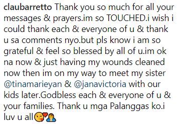 Barretto also expressed her gratitude to everyone who sent her messages and prayers.