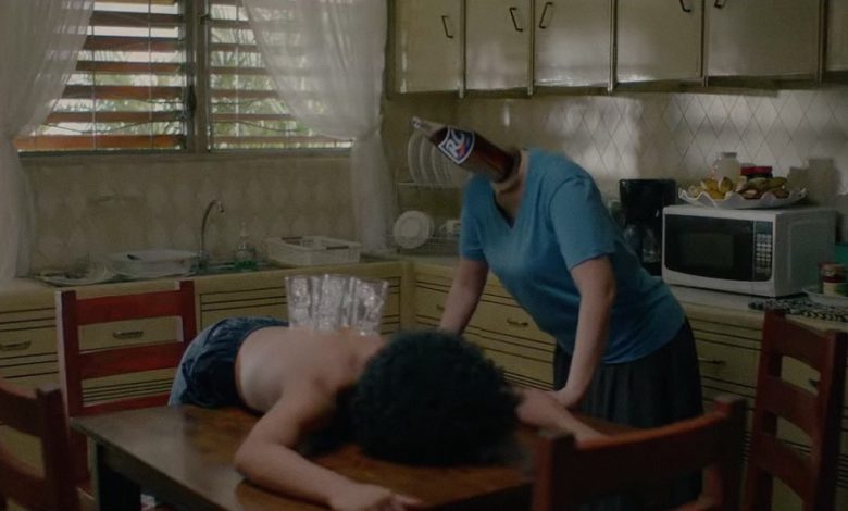 It then takes an odd turn when the boy takes off his uniform, lies on the table face down, and reveals that he has four glasses on his back. The mother then removes her head to show that she was actually a bottle of RC Cola.