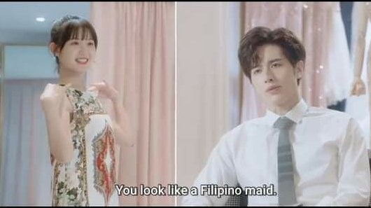 Twitter user @kthseokkity shared a screenshot of the first episode of “Make My Heart Smile”, showing the male character comparing a woman to a Filipino maid.
