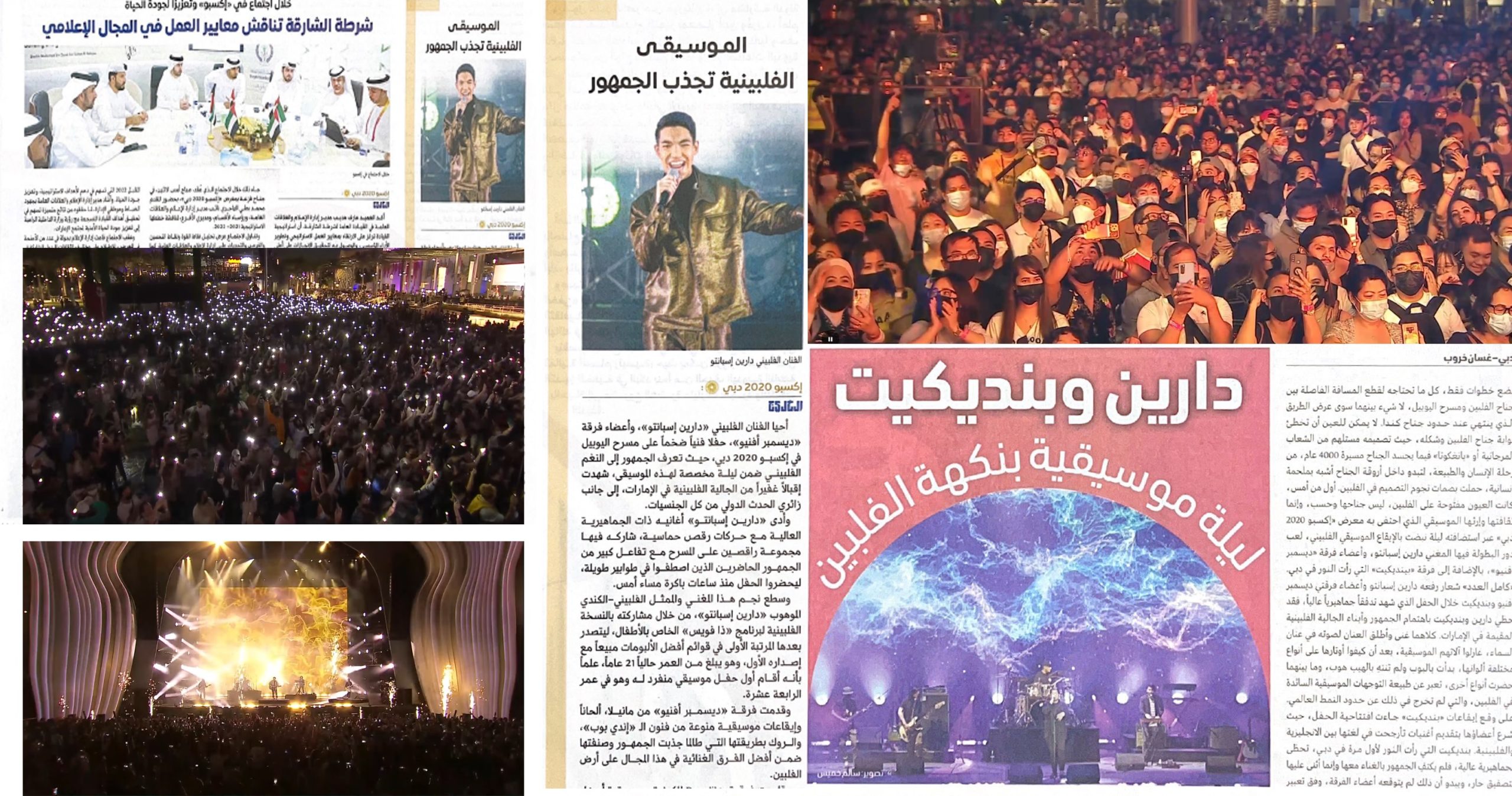 A crowd-puller, with tens of thousands of Filipinos, foreign concertgoers, Expo visitors in attendance, their concert acts caught the attention of Albayan and Al Khaleej, two major Arabic newspapers in the emirates.