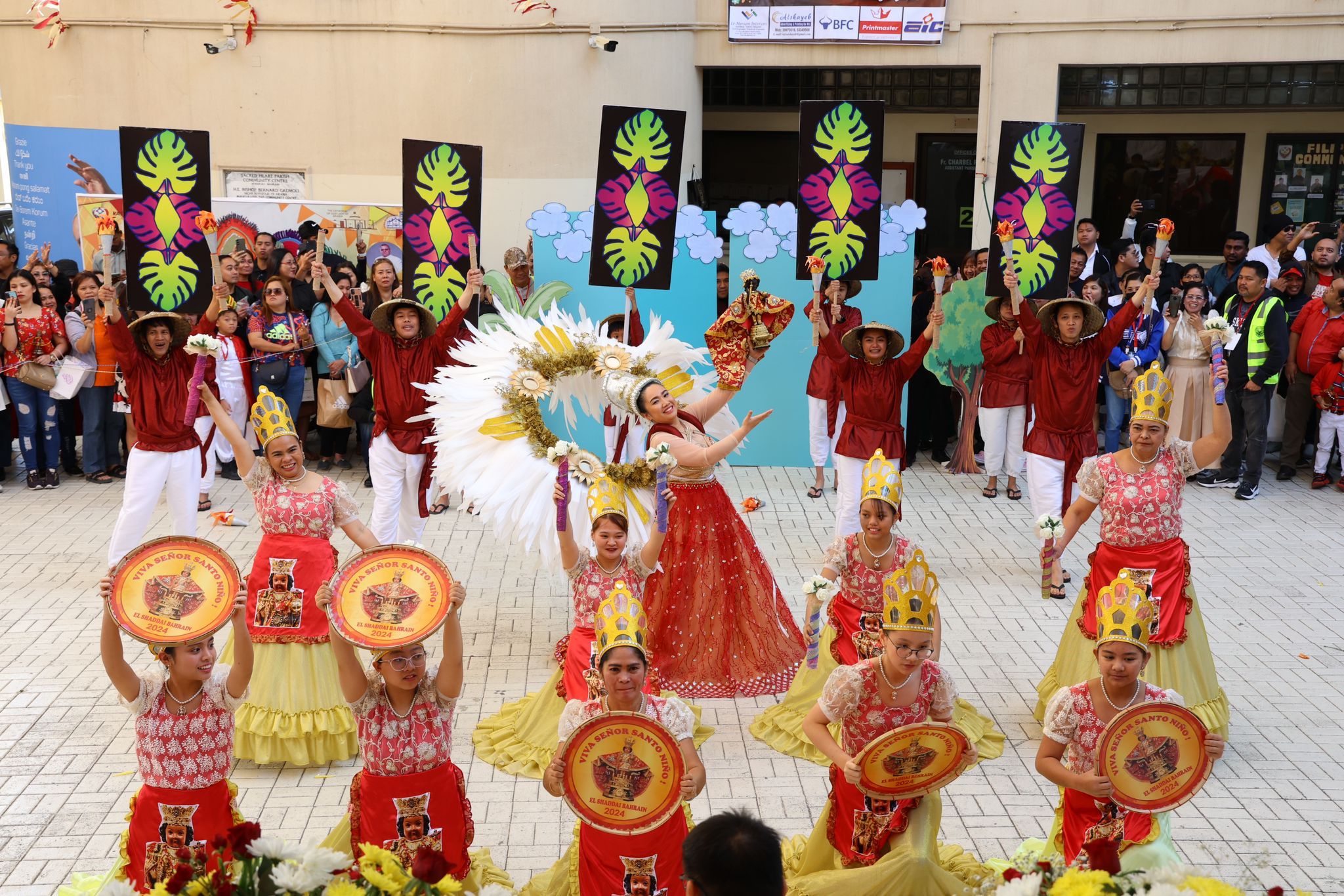 Performers clad in festive and vibrant costumes from Alwali Training and Development Centre (ATDC) with the Philippine Bahrain Caregivers Society (PBCS) and Katilingban sang mga Ilonggo sa Bahrain (KIB) won the first place in the Sinulog dance competition followed by El Shaddai Bahrain Gospel Dancers
