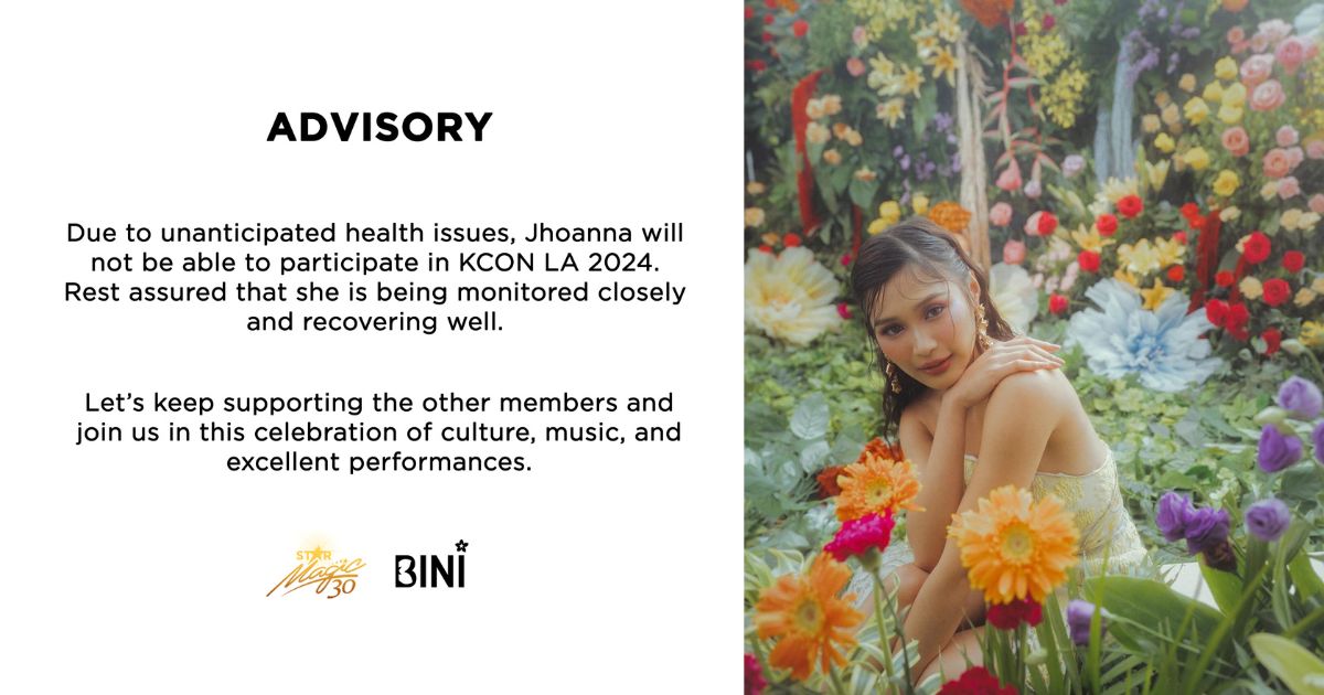 The advisory read: “Due to unanticipated health issues, Jhoanna will not be able to participate in KCON LA 2024.”