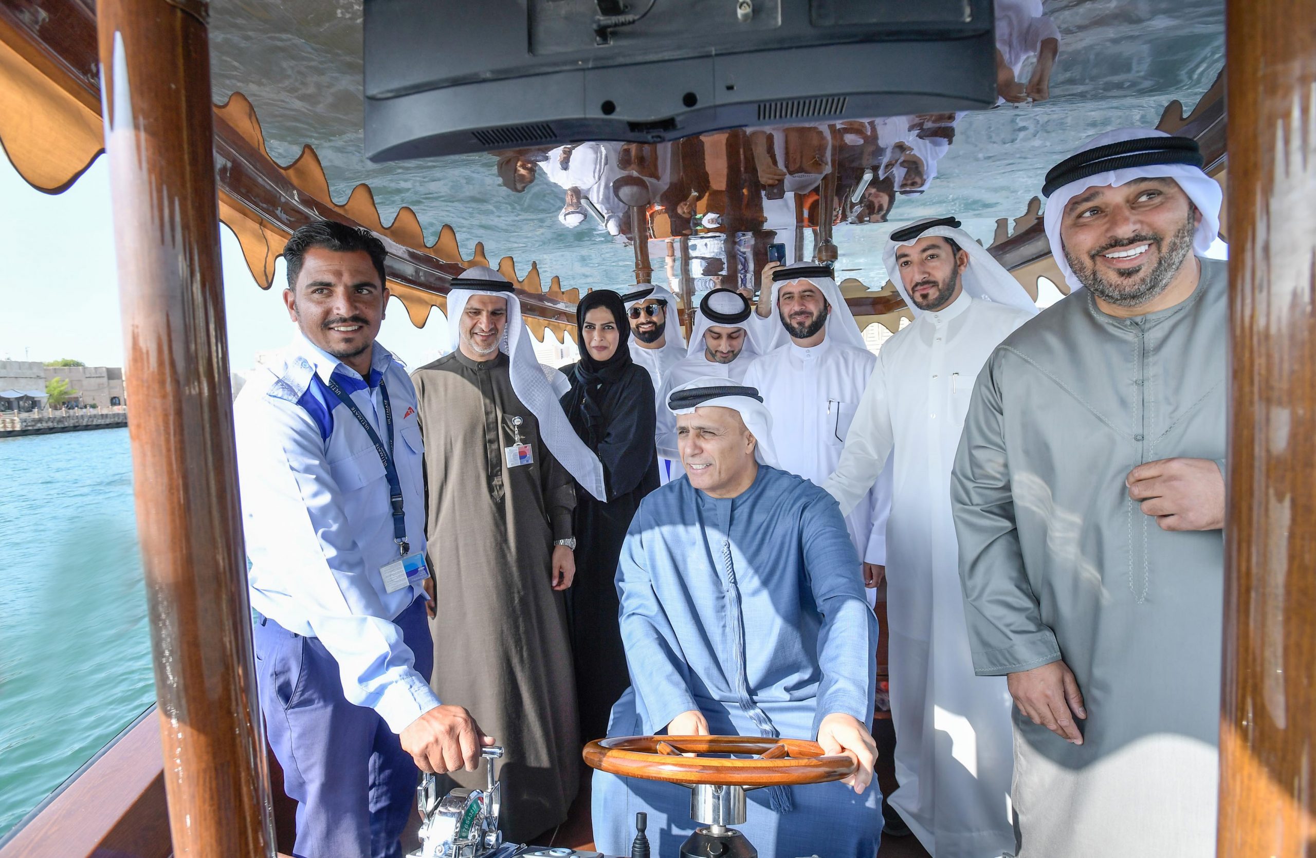 During a ride aboard the hybrid abra, Al Tayer heeded to a briefing by Ahmed Hashim Bahrozyan, CEO of Public Transport Agency, about the features of the new abra, which has a capacity for 20 riders.
