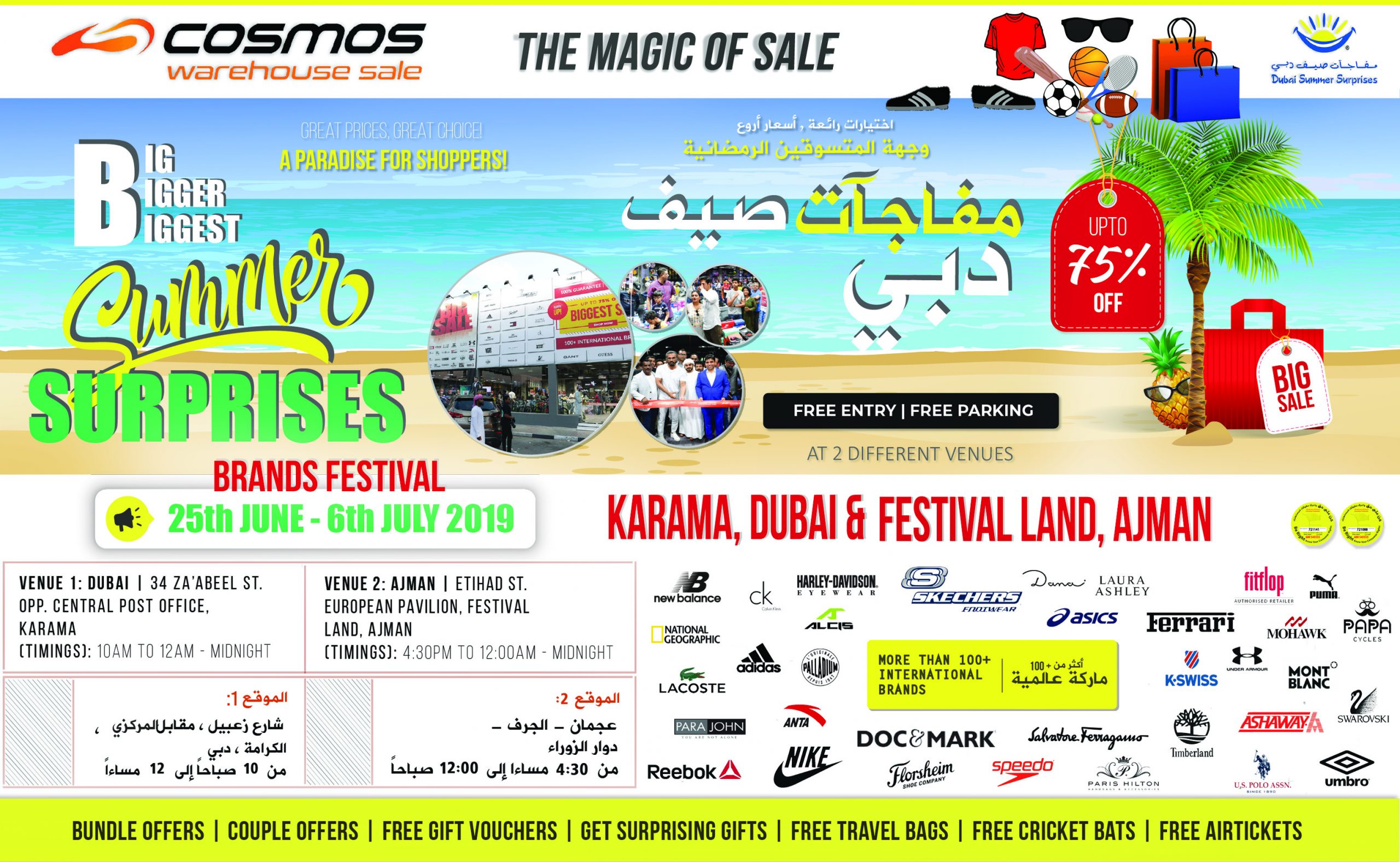 Cosmos Warehouse Sale has brought on another huge shopping festival as Big, Bigger, Biggest – Dubai Summer Surprises (DSS). All you need to do is head to 2 Different Venues, Karama Dubai.