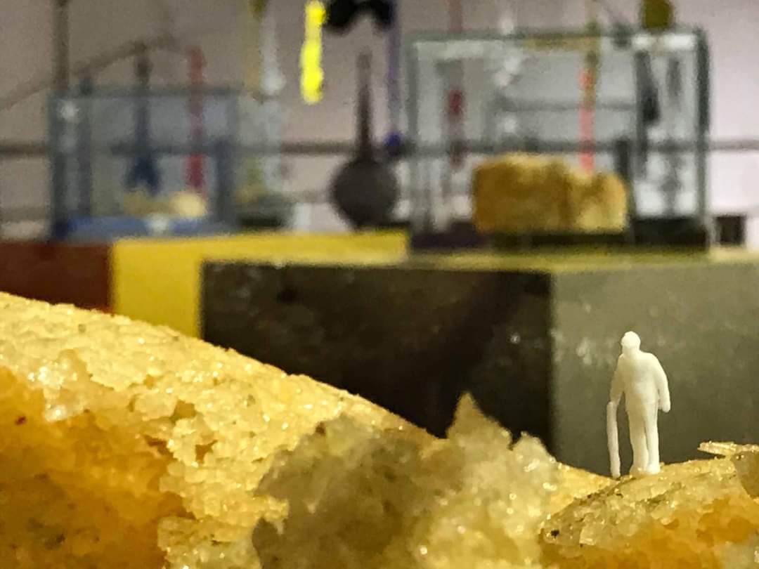 Visayan artist Manny Montelibano just made this possible by preserving the kaning tutong and adding small plastic figurines inserted between the grains and five multi-colored vitrines.
