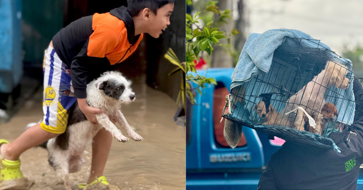 A netizen took to social media to share heartwarming photos of residents in Poblacion, Talisay, Cebu, who did not leave their furry friends behind amid the flooding and heavy rains caused by Typhoon Tino.