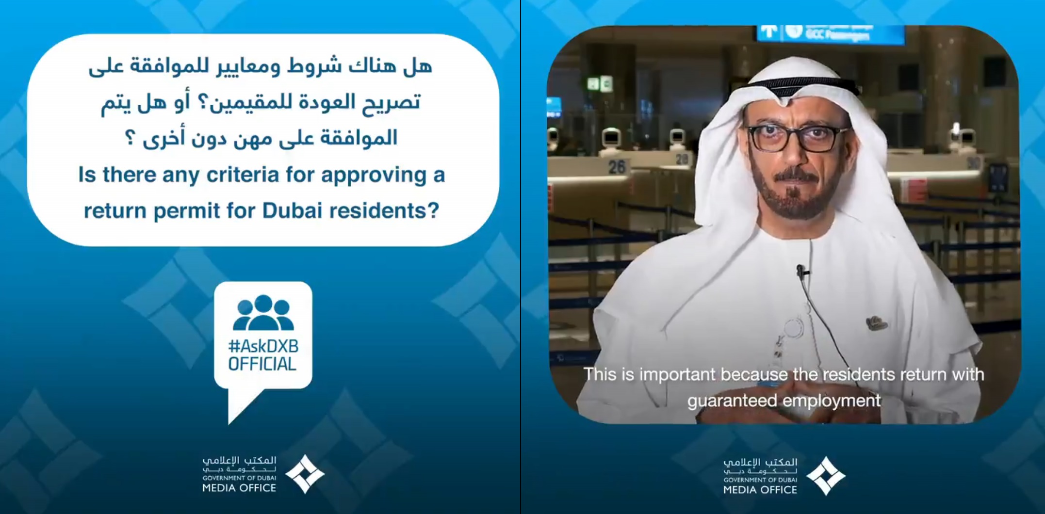 “All residents of the UAE can return to the country. However, there are some companies that must apply for the return permit on behalf of their sponsored employees,” said Maj. Gen. Al Marri during the first #AskDXBOfficial series launched by the Government of Dubai Media Office (GDMO).