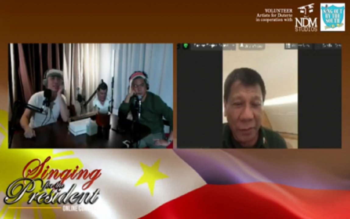 Duterte revealed that he was about to leave for Jolo during the video call with singer Jimmy Bondoc and writer-director and singer-songwriter Njel de Mesa during the “Singing for the President” virtual concert.