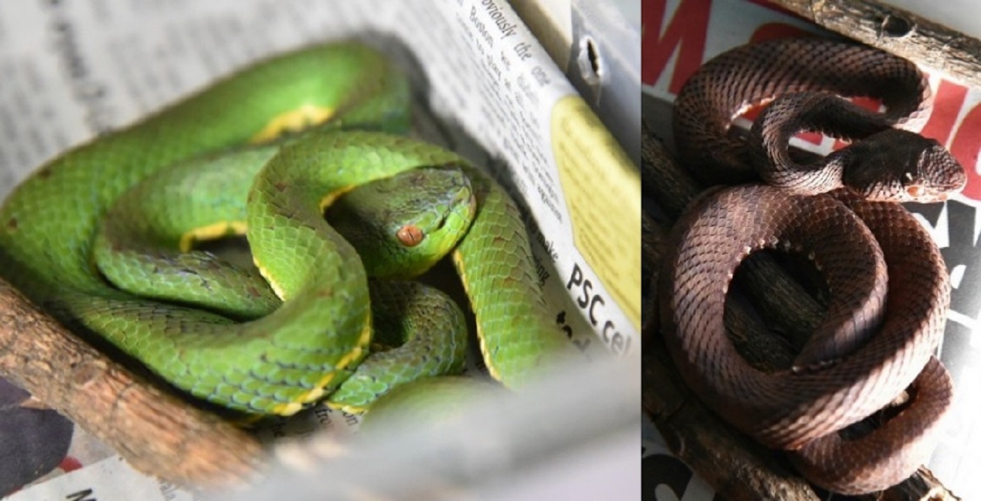 Authorities caught two cobras, eight pit vipers, and 15 sailfin lizards who were all hidden within bamboo chimes. The animals were supposed to be sent to Taiwan.