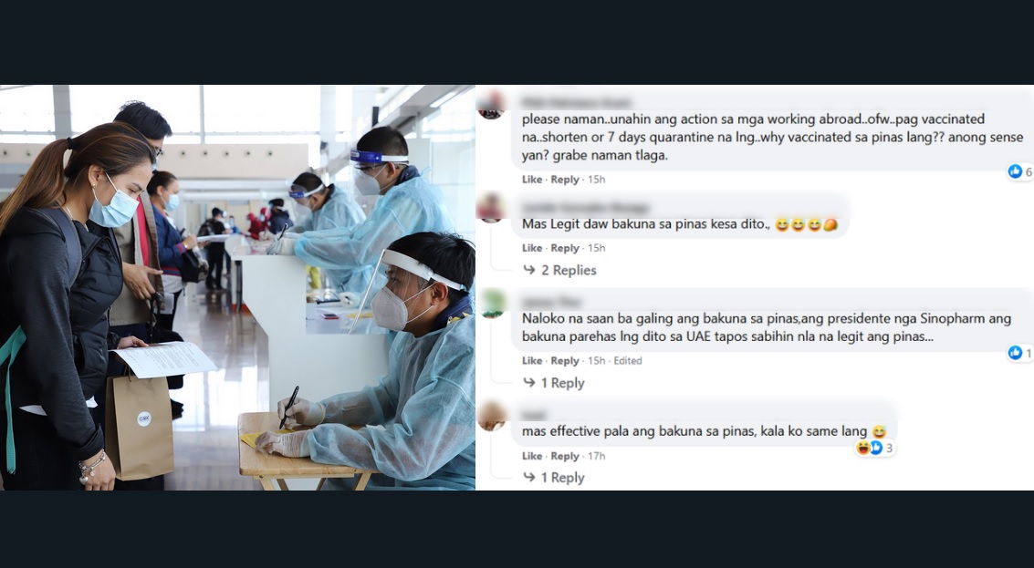 OFWs questioned the IATF measure on the difference of quarantine measures between individuals who got their dose back home from those who took the COVID-19 vaccine abroad.