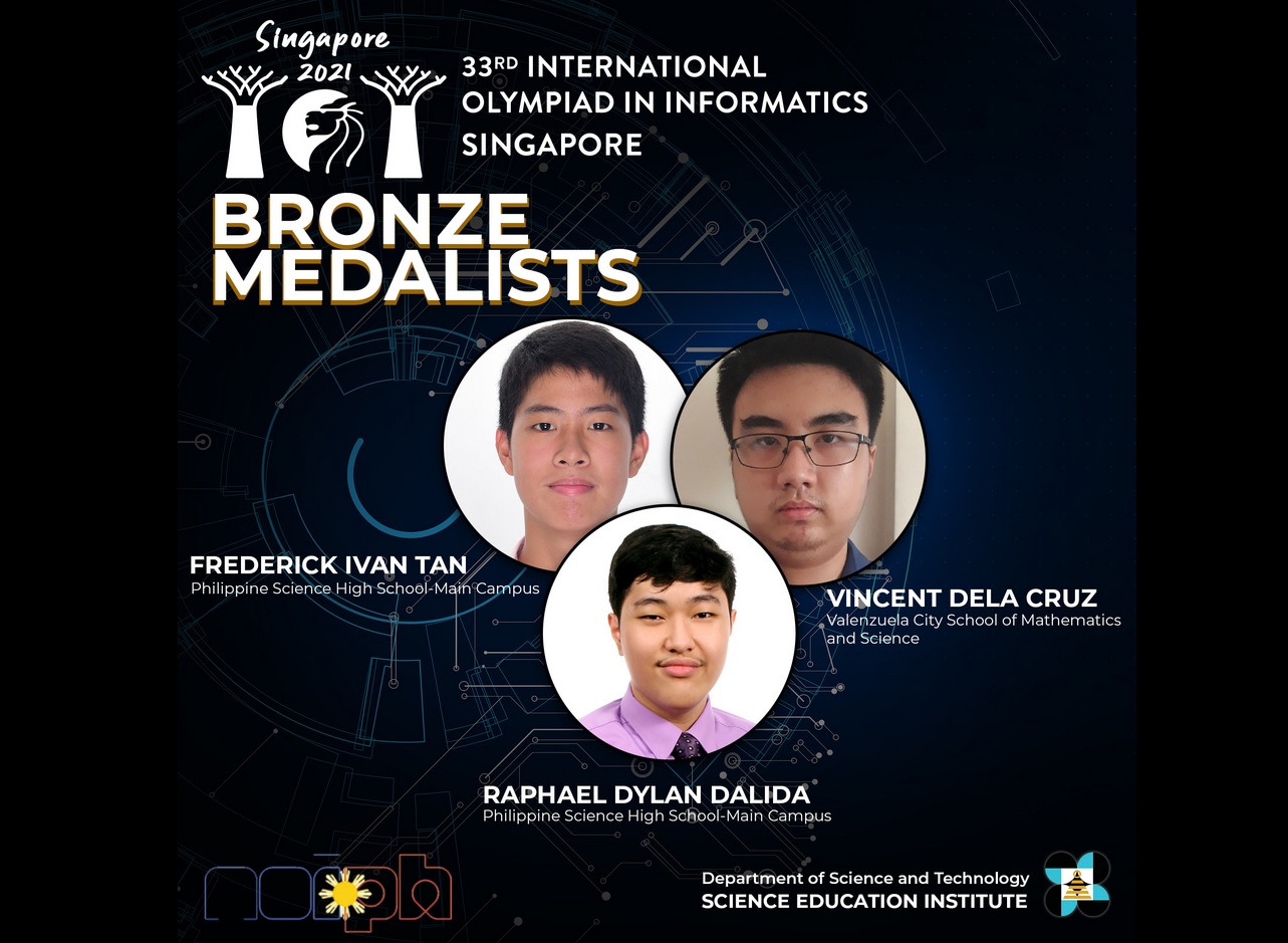 The 33rd International Olympiad for Informatics (IOI) in Singapore, which was held online, witnessed three Filipino high school students from the Department of Science and Technology’s Science Education Institute winning 3 bronze medals.