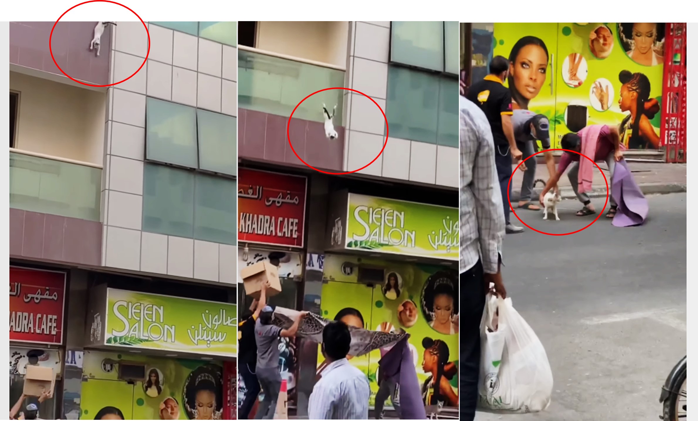 Ashraf Blanza, a Moroccan national and a building guard, the cat from the balcony caught his attention at around 8 in the morning. He attempted hard to ensure that it didn’t fall on the ground and was not harmed.