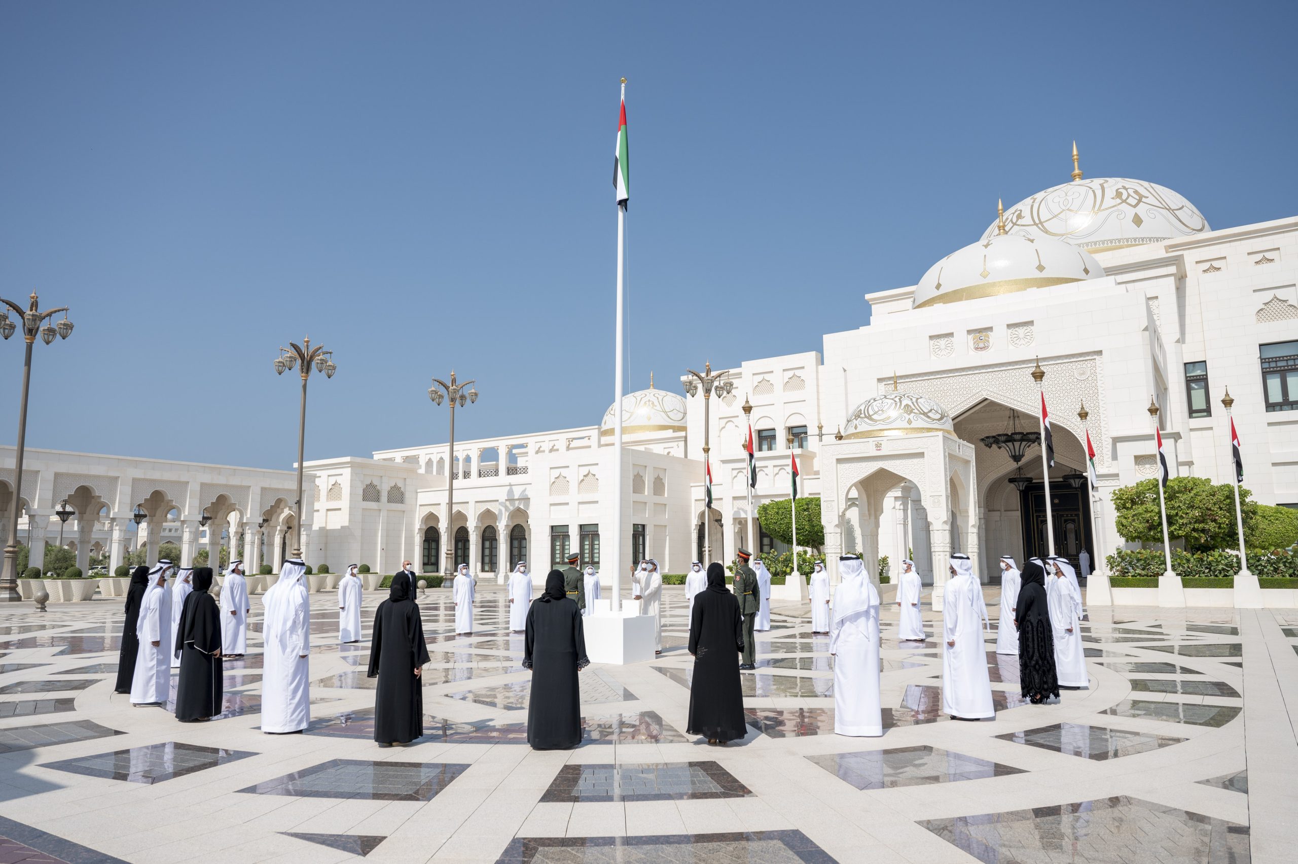 Sheikh Mansour bin Zayed on Wednesday raised the country’s flag while the national anthem played in the background at a ceremony held at Qasr Al Watan.