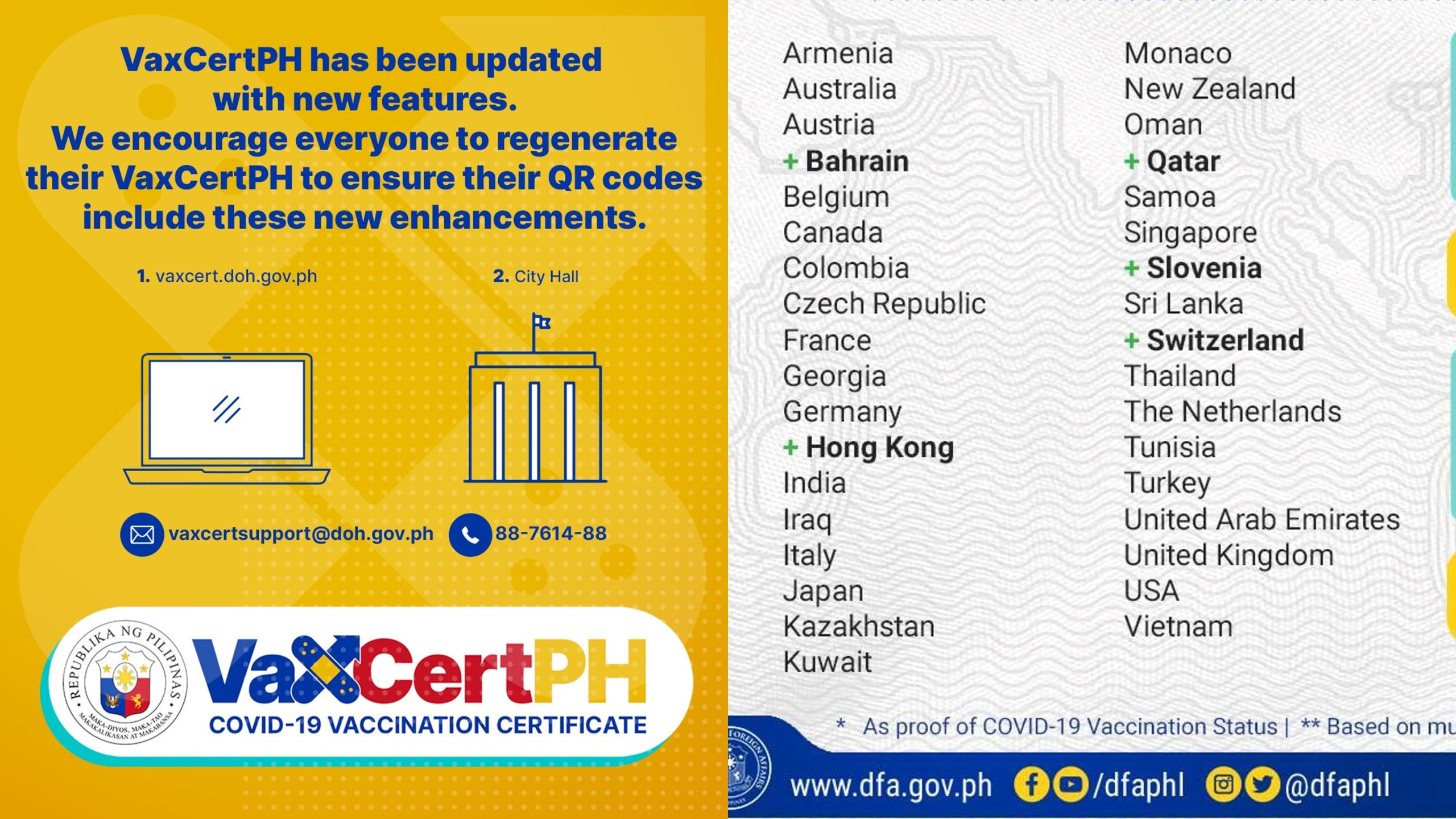 Currently, the VaxCertPH is accepted in at least 35 countries including the United Arab Emirates.