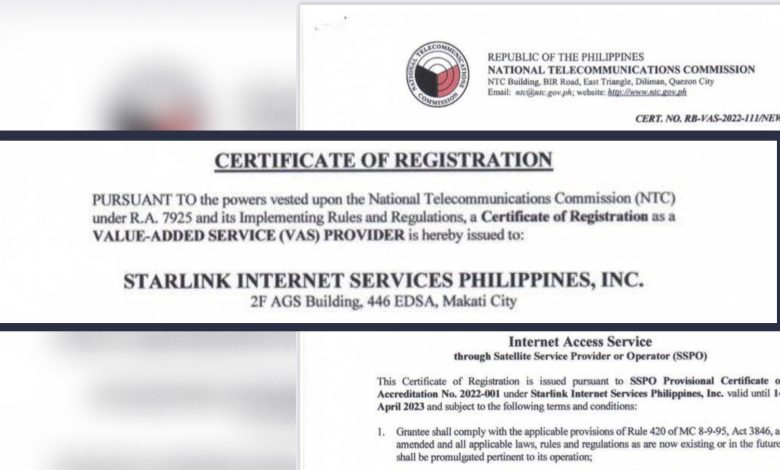 In a copy of the certificate of registration provided by the agency, the Starlink Internet Services Philippines’ VAS registration was issued on May 26th, making the Philippines the first country in South East Asia to offer Starlink services.