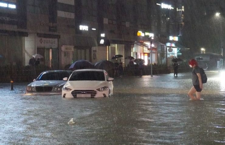Parts of Seoul, the western port city of Incheon and Gyeonggi Province that surrounds Seoul, received heavy rains of over 100 millimetres per hour Monday night, with per-hour precipitation in Seoul’s Dongjak district surpassing 141.5 mm at one point, the highest downpour per hour since 1942.