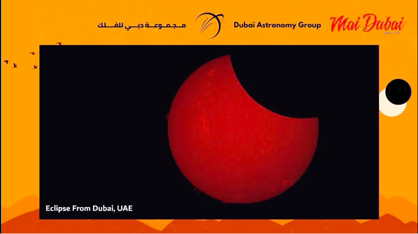 The event which was broadcasted live online by the Dubai Astronomy Group showed the two-hour celestial spectacle which happens when the moon, sun, and earth don’t align in a perfectly straight line.