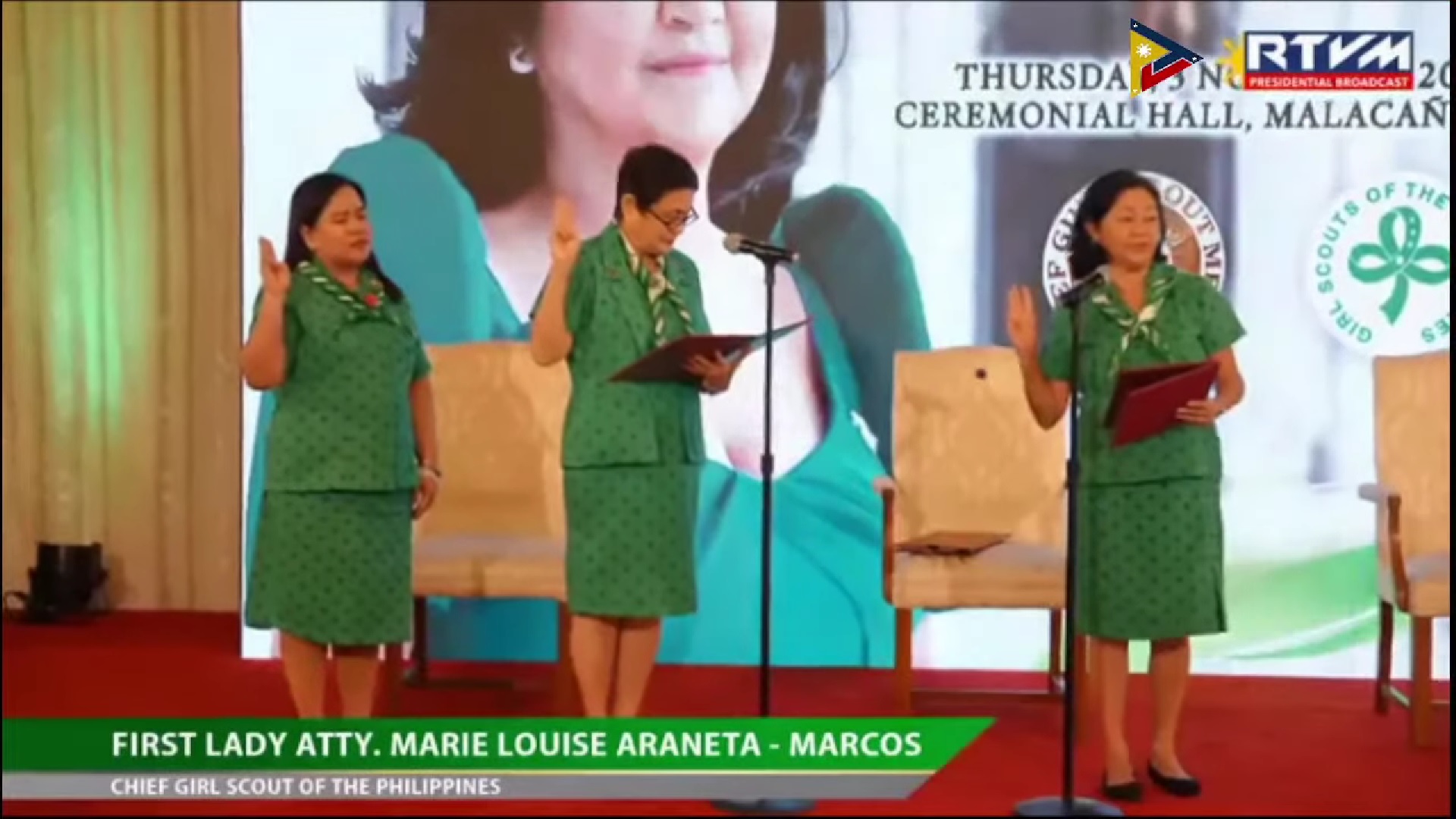 Araneta-Marcos took her vow before Lim-Yuson, serving as an investing officer, “to do [her] duty to God [and to the] country, and to help other people at all times and obey the Girl Scout Law.”