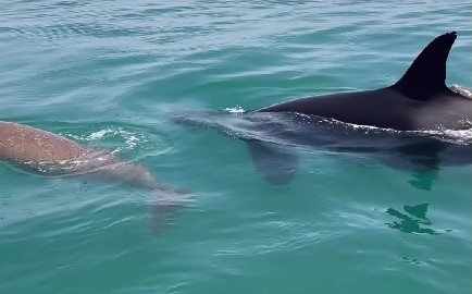 A group of fishermen has captured a video of a pair of orcas surrounding a dugong off the coast of Abu Dhabi.