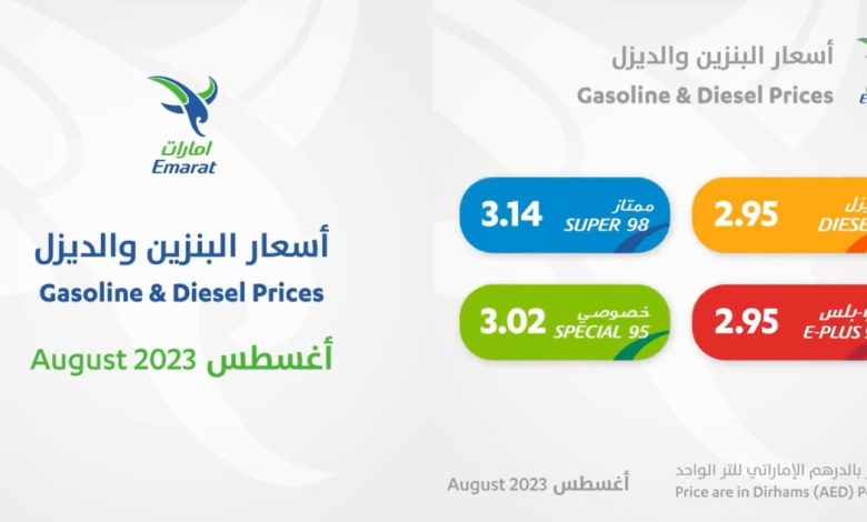 أسعار الوقود الشهرية: أسعار الوقود لشهر أغسطس 2023 وفقاً للجنة متابعة أسعار الجازولين والديزل في #الإمارات
