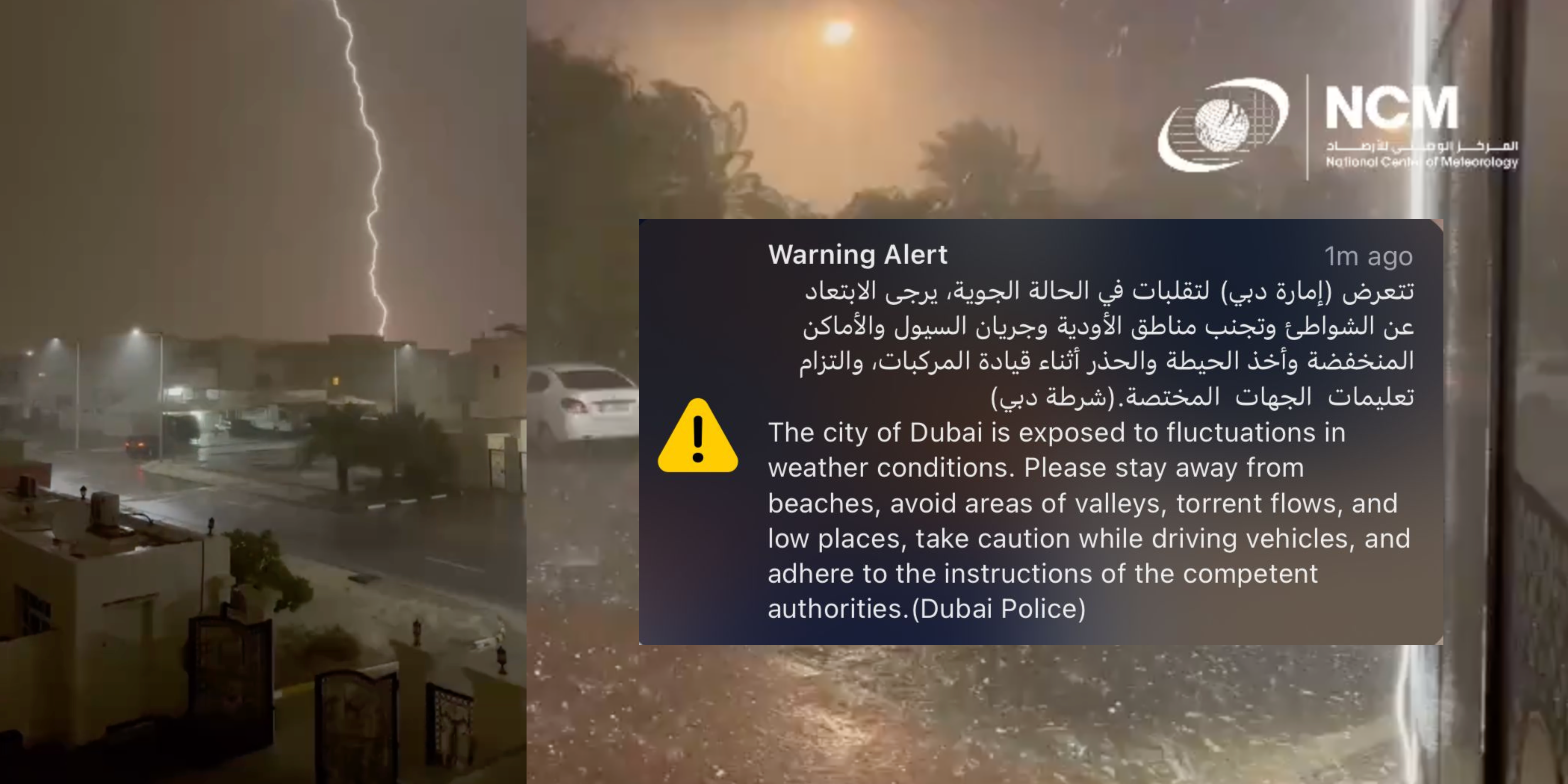 The Dubai Police issued a warning alert on Monday as the United Arab Emirates (UAE) braced for unpredictable weather.