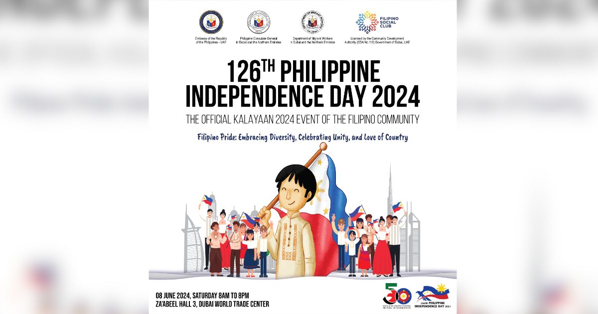 The Filipino Social Club (FilSoC), in partnership with the Philippine Consulate of Dubai and the Northern Emirates, is proud to present the 126th Philippine Independence Day (PID) celebration on June 8, 2024, at Zabeel Hall 3, Dubai World Trade Center. This year’s theme, “Filipino Pride: Embracing Diversity, Celebrating Unity, and Love of Country,” promises a vibrant and memorable event for the entire Filipino community and friends.