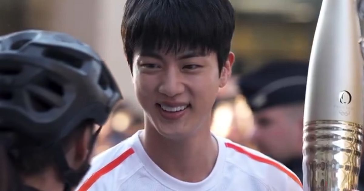 👀 Watch the Torch get closer and closer with @bts_bighit Jin 🔥@Paris2024 pic.twitter.com/zZ2rHiTTRX— The Olympic Games (@Olympics) July 14, 2024