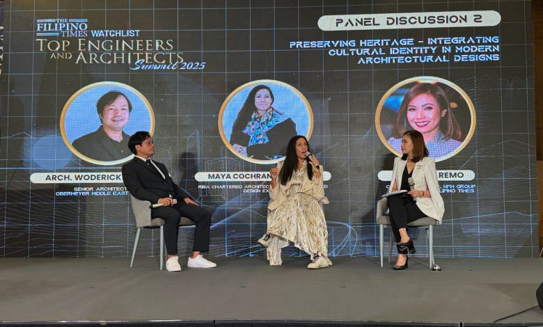 A panelist at The Filipino Times Watchlist: Top Engineers and Architects in the Middle East Summit 2025, Arch. Woderick Pareja, Senior Architect at OBERMEYER Middle East GmbH, emphasized the importance of integrating cultural identity into modern urban developments by incorporating traditional elements like Islamic geometric patterns and mashrabiya (traditional latticework).