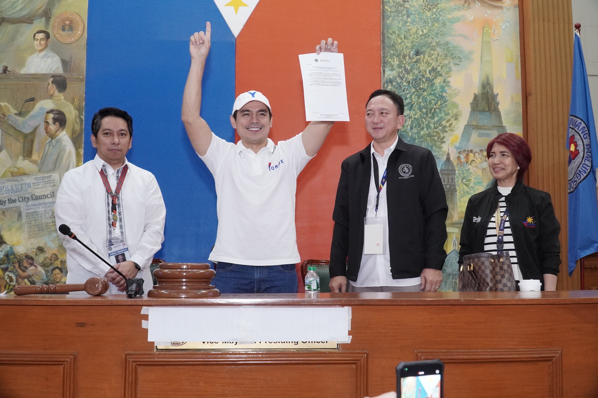 The city board of canvassers officially proclaimed Moreno and his running mate Chi Atienza on Tuesday night, May 13. Based on the Commission on Elections (Comelec) transparency server, Moreno garnered 530,825 votes, far ahead of Lacuna’s 190,087. Atienza secured 583,124 votes as of 9:21 p.m.