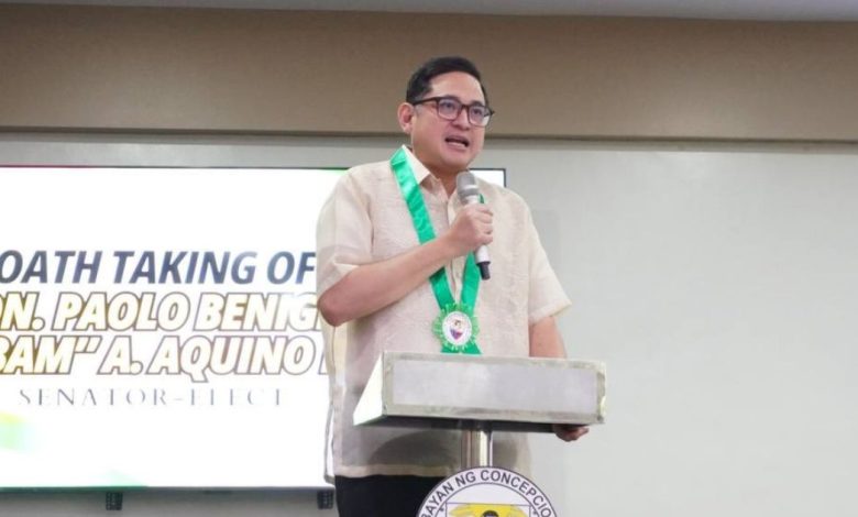 Senator-elect Paolo Benigno “Bam” Aquino IV officially took his oath of office in his hometown of Concepcion, Tarlac. The ceremony was held at the Concepcion Municipal Government Center and was administered by Mayor Noel Villanueva.