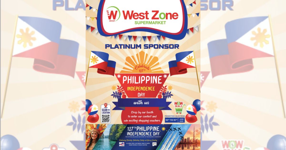 West Zone Supermarket is celebrating Filipino pride as a Platinum Sponsor at the 127th Philippine Independence Day 2025 on June 14, 2025, held at The Dubai World Trade Center – Exhibition Halls 1 & 2 from 8 AM to 8 PM.