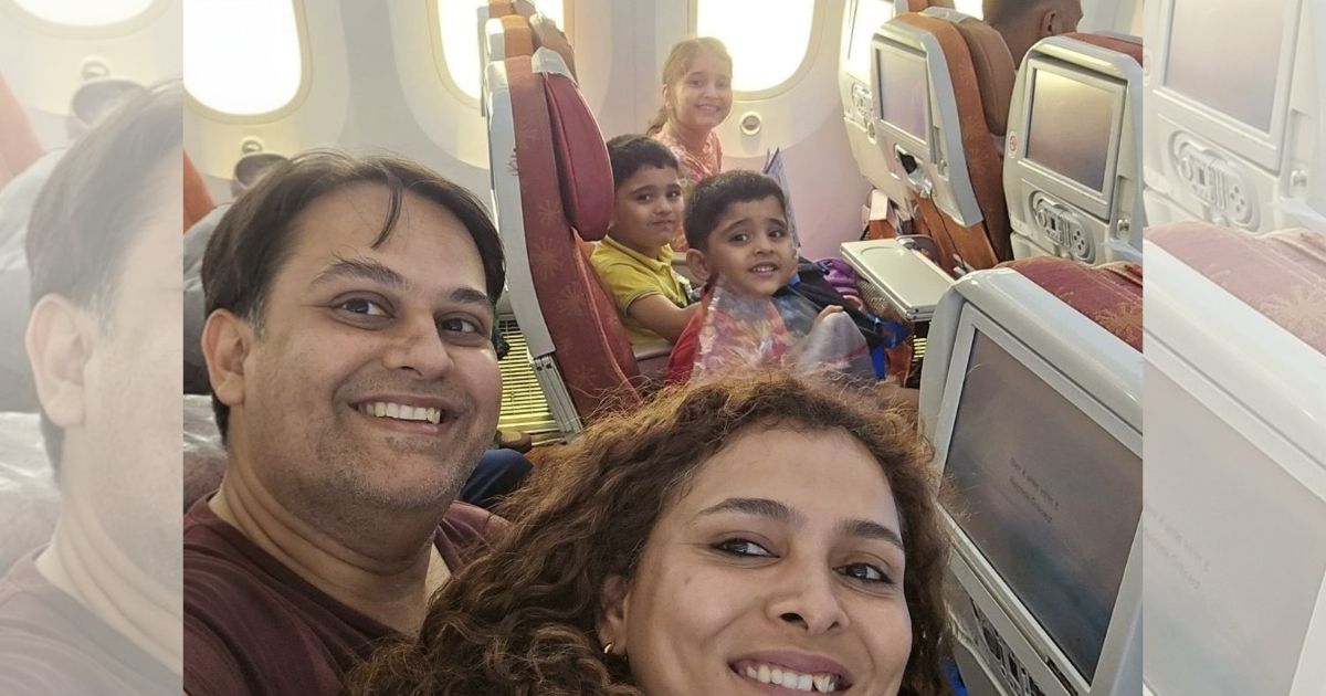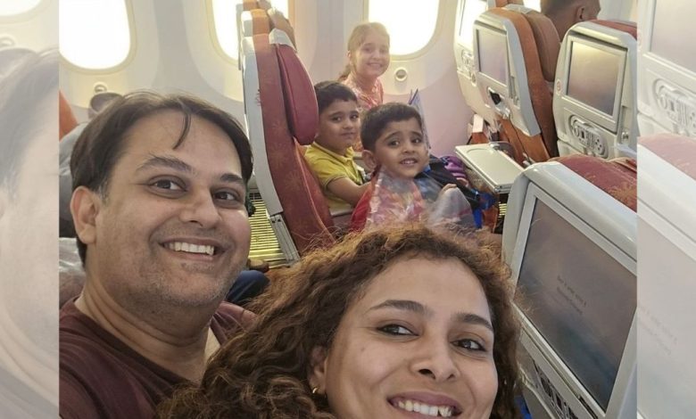 In the photo taken aboard the plane, Dr. Joshi is seen smiling beside his wife of 10 years, who had recently resigned from her position in Udaipur. Their three children, seated nearby, are also beaming with joy in what would become a heartbreaking final image.