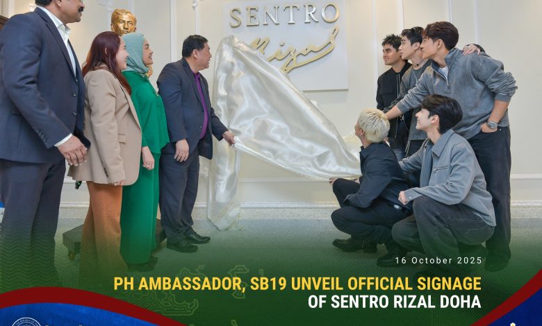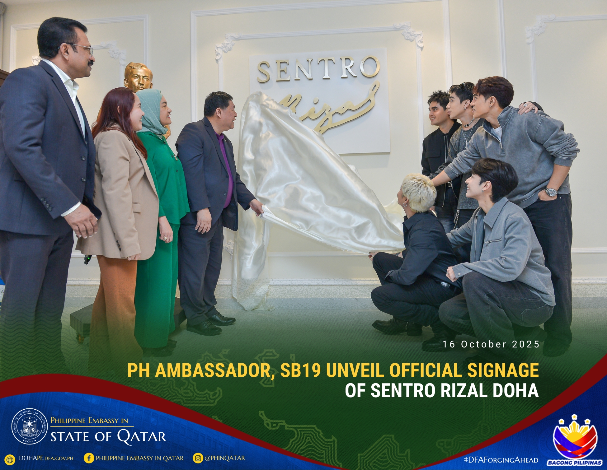 P-pop kings SB19 took center stage at the Philippine Embassy in Qatar as they joined Ambassador Mardomel Celo D. Melicor in unveiling the new Sentro Rizal signage on October 16, 2025.