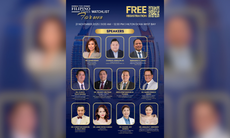 Overseas Filipino workers (OFWs) in Qatar are invited to a unique opportunity to learn from industry experts at The Filipino Times Watchlist Forum, happening on 21 November 2025 at Hilton Doha West Bay, Doha, Qatar.