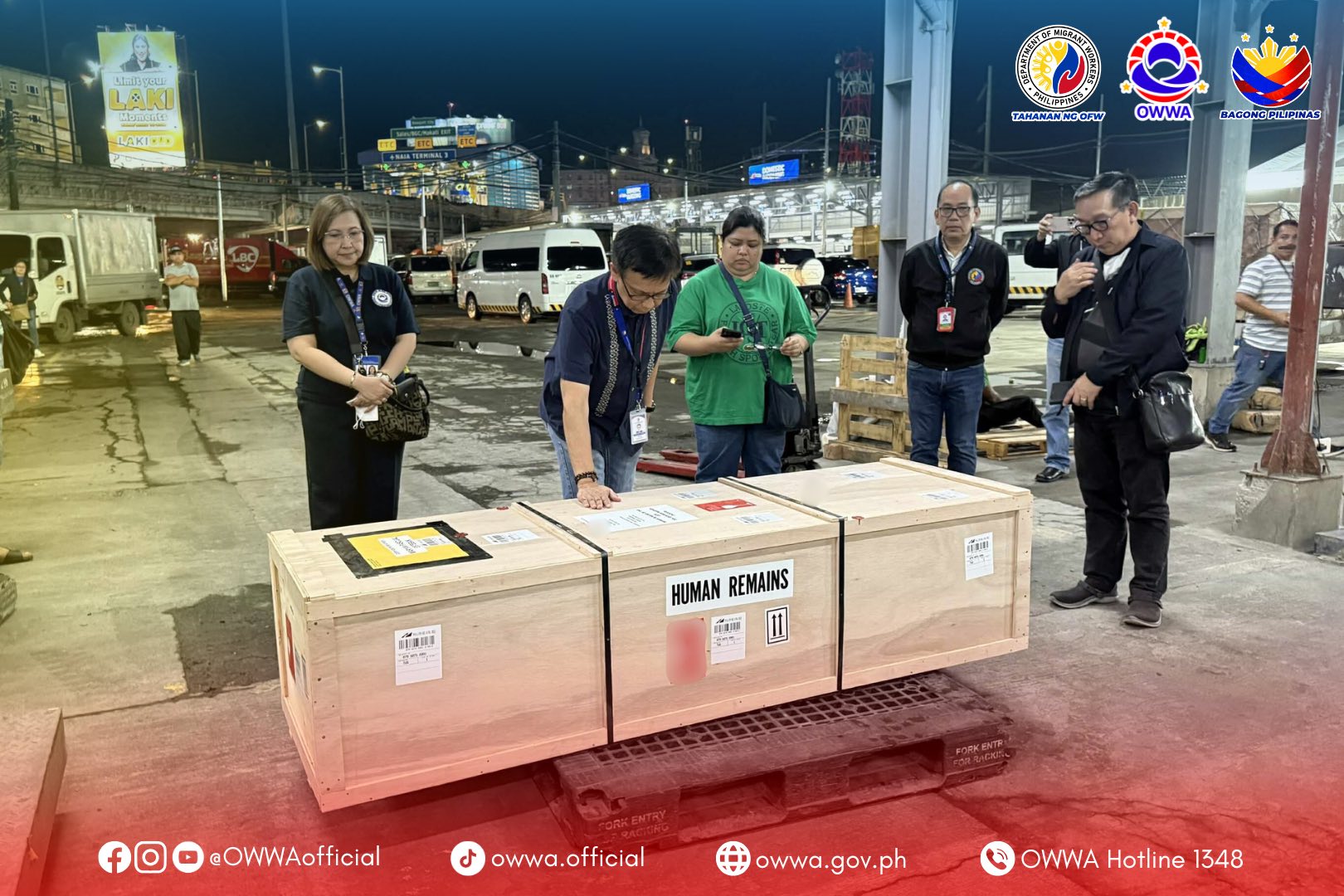 Upon arrival, her remains were received and assisted by officials led by Overseas Workers Welfare Administration (OWWA) Administrator PY Caunan, Department of Migrant Workers (DMW) Secretary Hans Leo Cacdac, and Bryan Revilla, AGIMAT Partylist Representative. The officials ensured proper procedures were followed and that immediate assistance was extended to Esteban’s bereaved family.