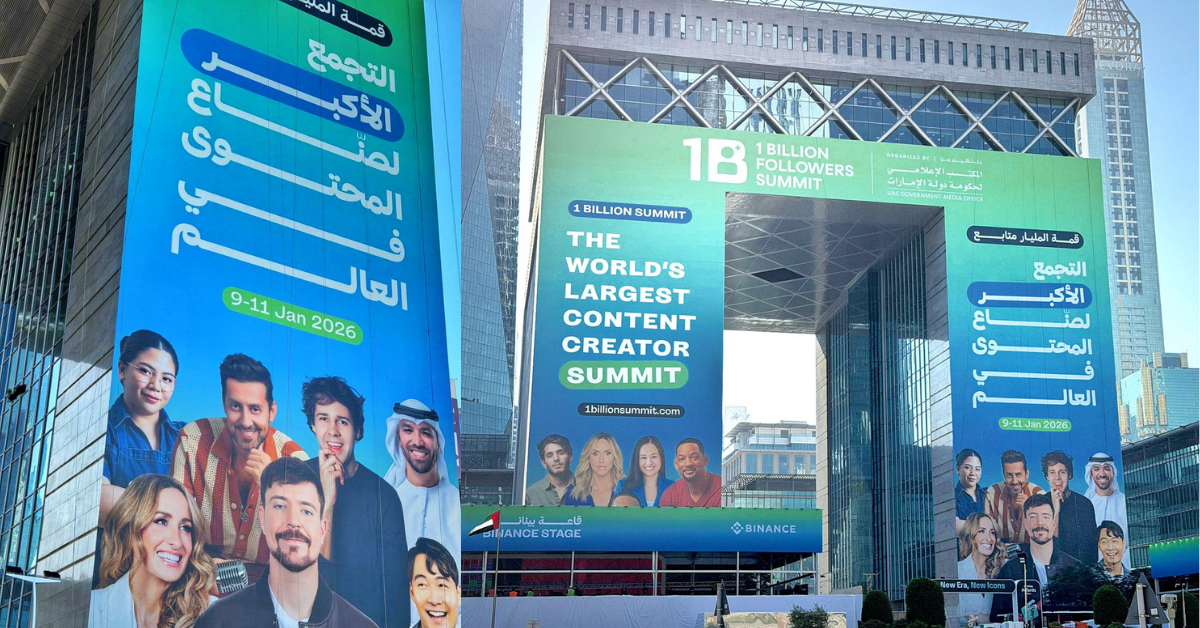 The billboard highlights her participation in the world’s largest content creator summit, taking place January 9–11 in Dubai, alongside some of the most renowned international digital creators.