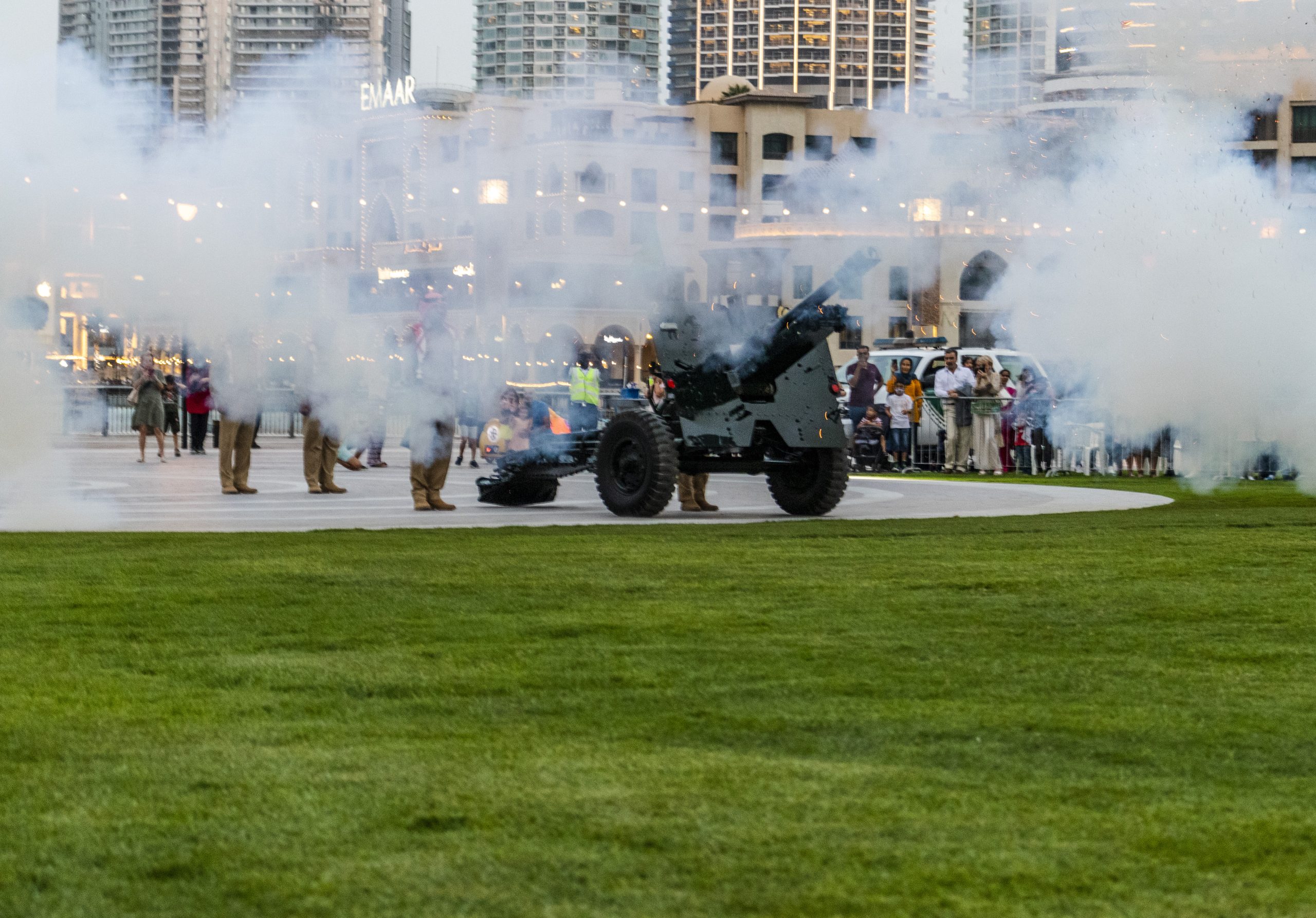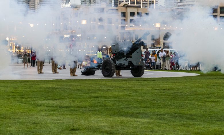 In addition, a mobile cannon will travel to 17 other sites, including Dubai Parks and Resorts, One and Only Za’abeel, Umm Suqeim Majlis, JBR, Bab Al Shams, Meydan Hotel, Global Village, Atlantis, Nad Al Sheba Majlis, Margham, Burj Khalifa, Lahbab, Al Khawaneej Majlis, Marasi Boulevard, Al Warqa, Vida Creek Harbour, and Al Barsha Park. A separate mobile cannon will also tour Hatta.