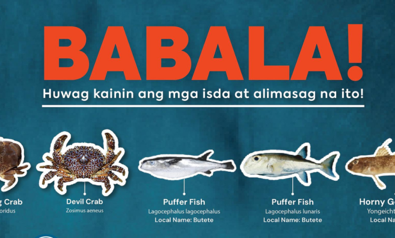BFAR specifically mentioned the Pufferfish (locally called butete), Horny Goby (biya), and crab species such as the Floral Egg Crab and Devil Crab. These species carry tetrodotoxin and saxitoxin in their skin, body, and organs.