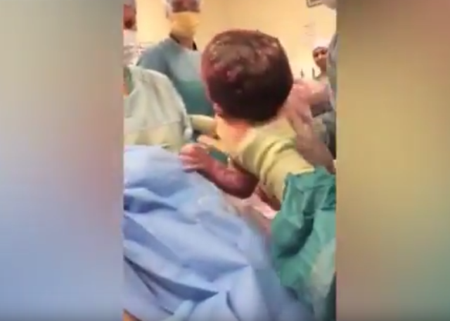 Doctors and nurses look on as the baby delivers himself, reported DailyMail, removing his head first followed by his shoulders and then the full body.