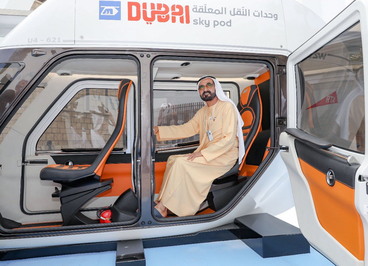 .@HHShkMohd accompanied with @HamdanMohammed reviews two models of the Sky Pods, a mobility system being tested by the @RTA_Dubai #Dubai #WorldGovSummit pic.twitter.com/Gg6vjLG46K
