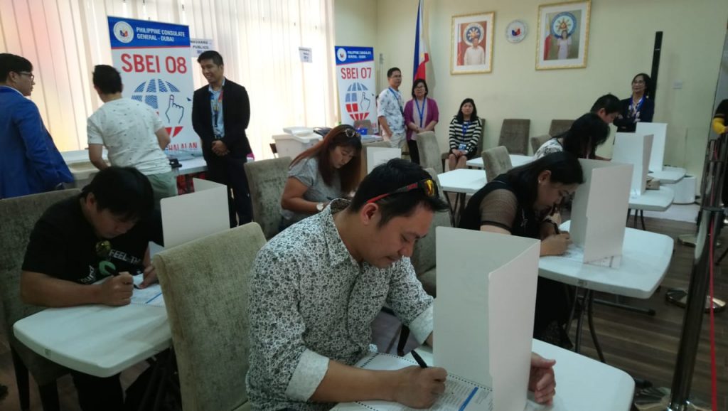DUBAI: Registered overseas Filipino voters start trooping to the Philippine Embassy and Consulate on April 13 as they cast their votes in the Philippines’ midterm election where 12 Senate seats and one in the lower house are at stake.