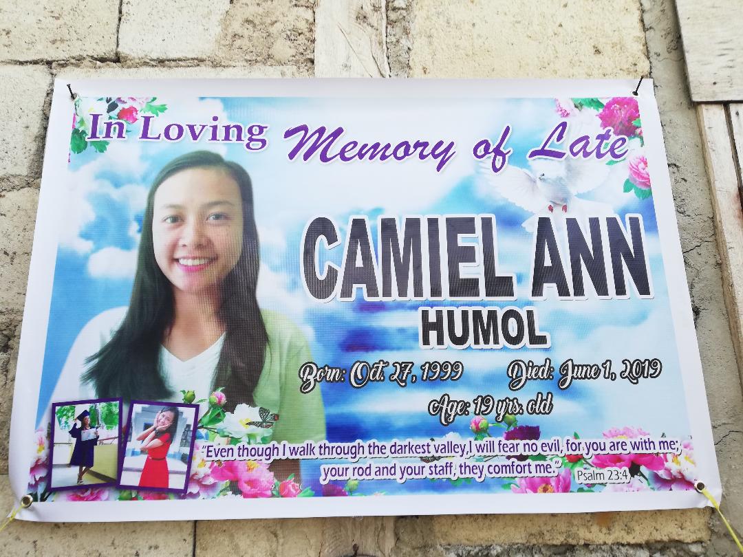 Camiel Ann Humol, 19, of Barangay Santo Tomas in Trinidad town, Bohol died of a heart attack on Saturday, June 1, days after she was hospitalized for cutting her wrists on apparent suicide.