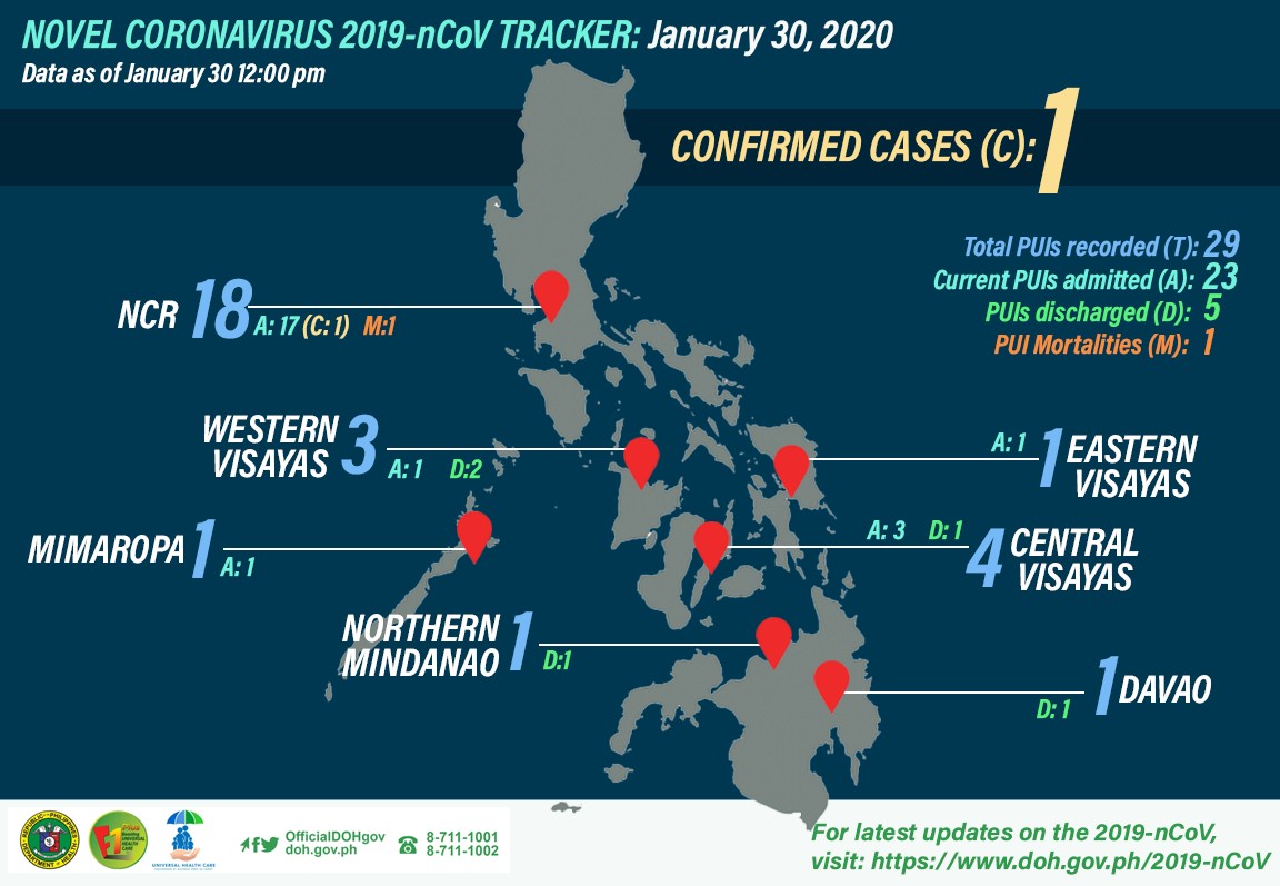 As of January 30, 2020, DOH has recorded 29 Patients Under Investigation (PUIs) across the country.