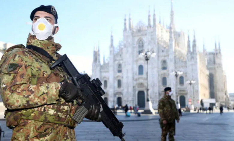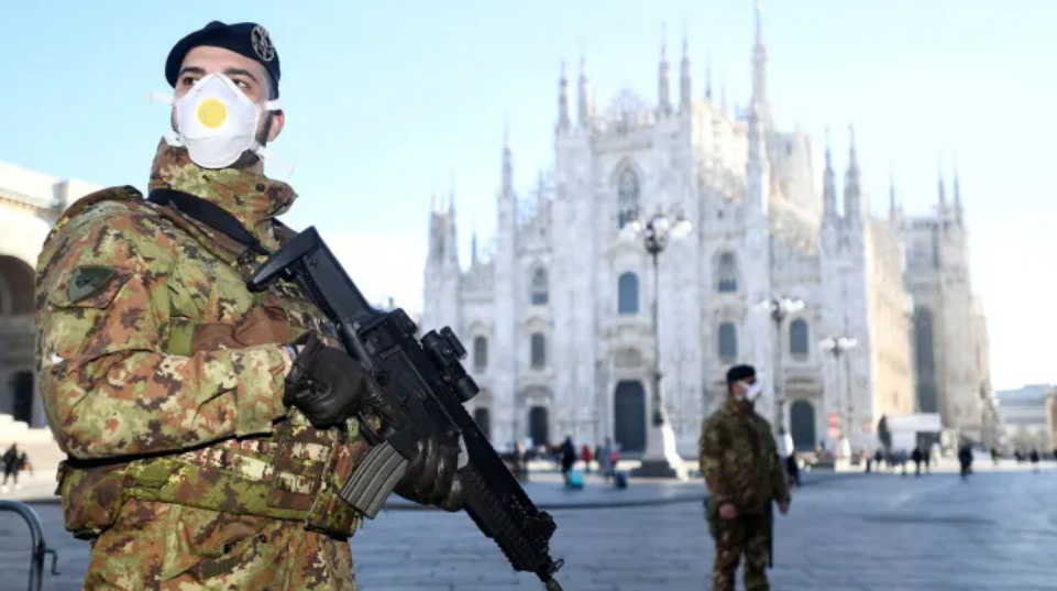 Italy is counting on soldiers to enforce lockdown as the country grapples to contain the virus which has 627 lives in 24 hours.