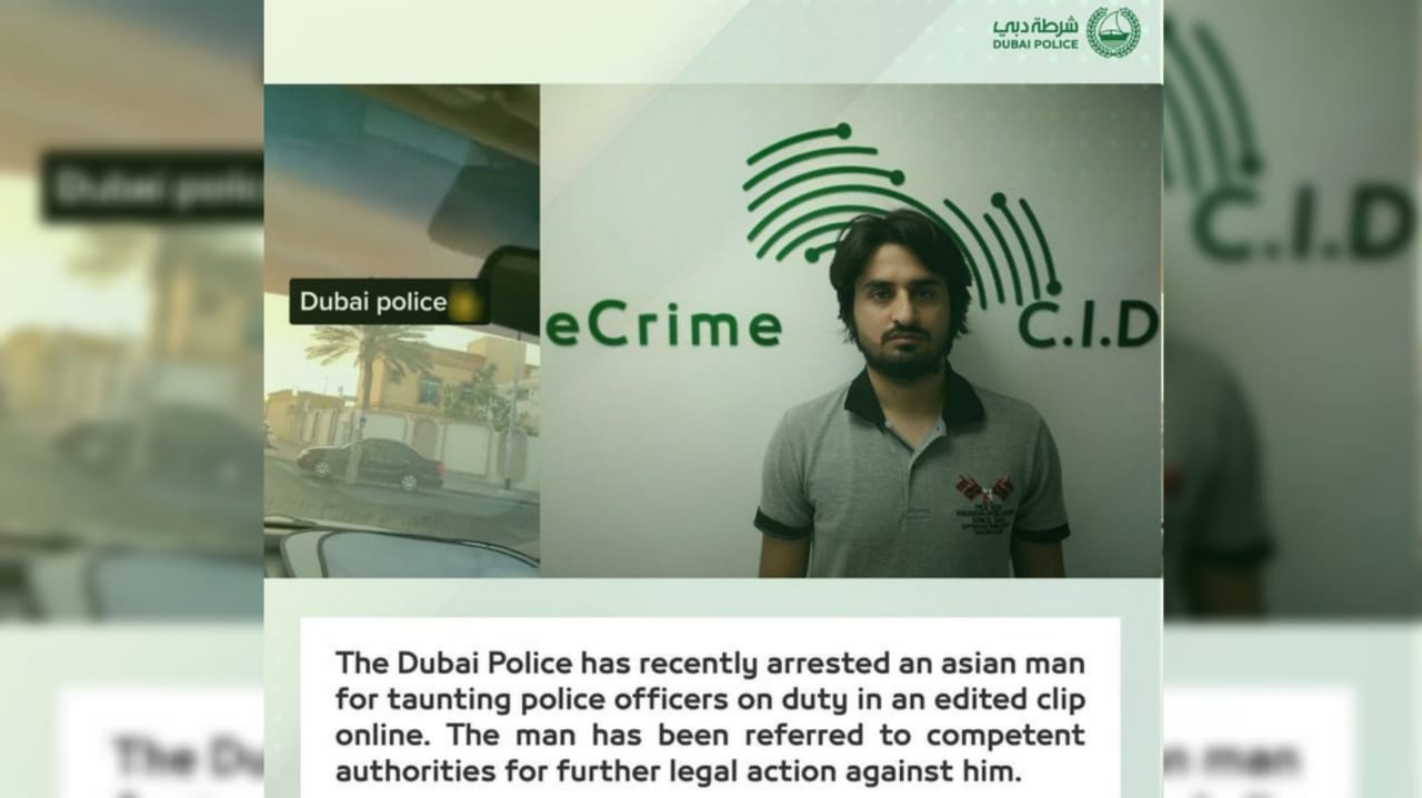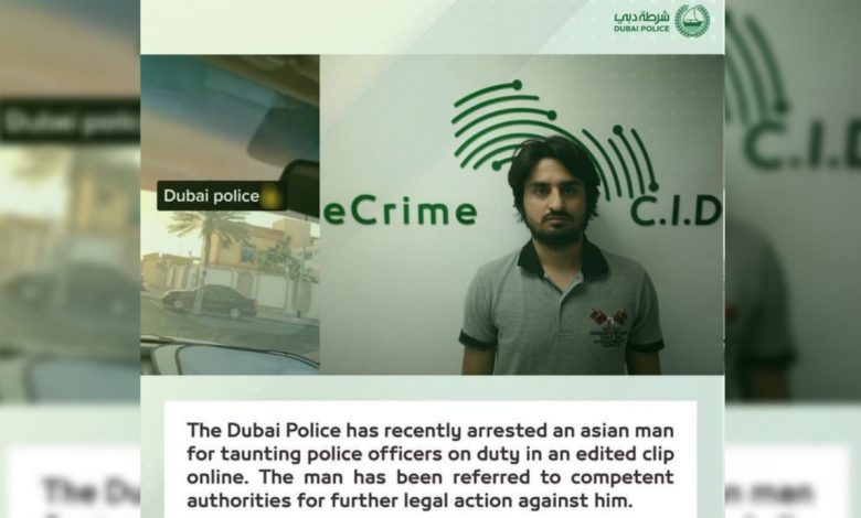The Dubai Police has recently arrested an Asian man for taunting police officers on duty in an edited clip online. The man has been referred to competent authorities for further legal action against him. pic.twitter.com/bq9aftOfFP