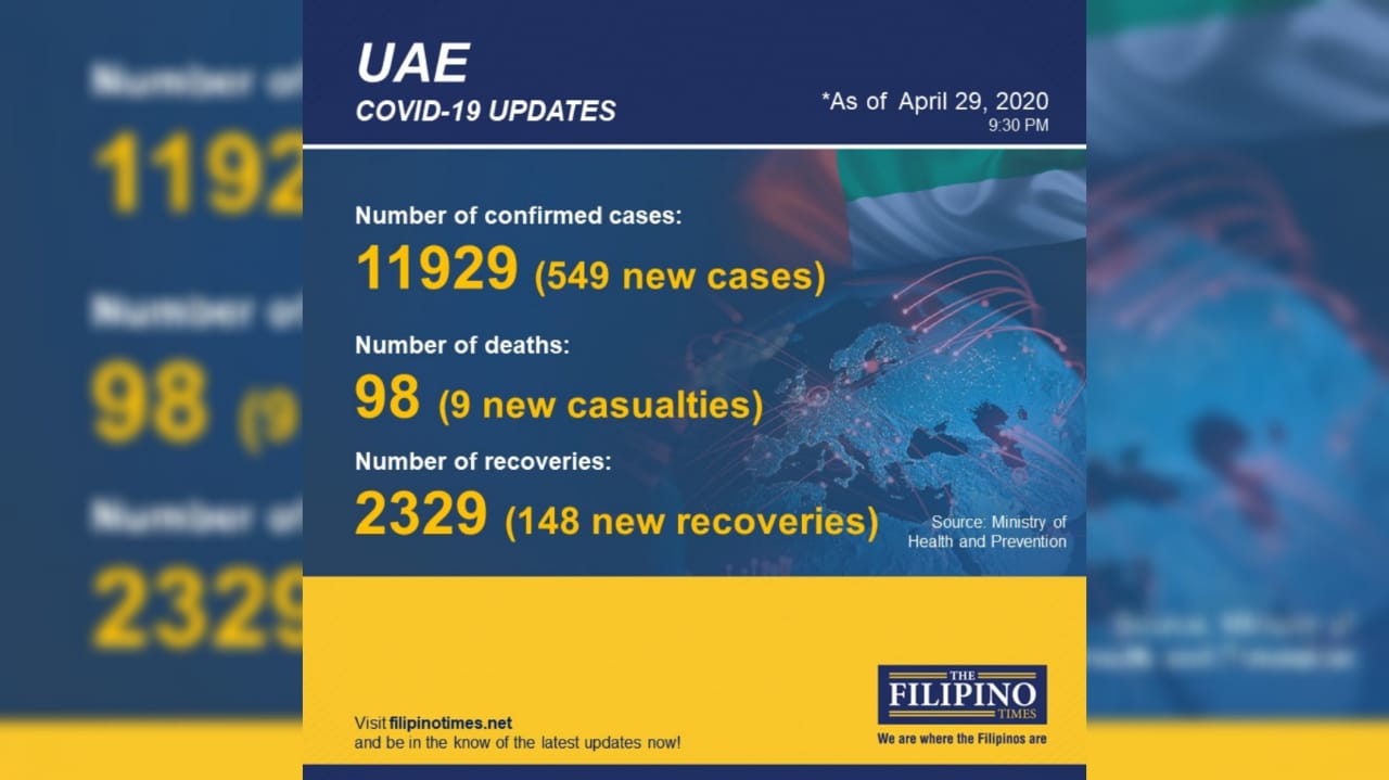 The UAE’s Ministry of Health and Prevention (MoHAP) stated that an additional 26,195 tests for the coronavirus disease (COVID-19) in the country has revealed 549 new cases in the country, bringing the total to 11,929.